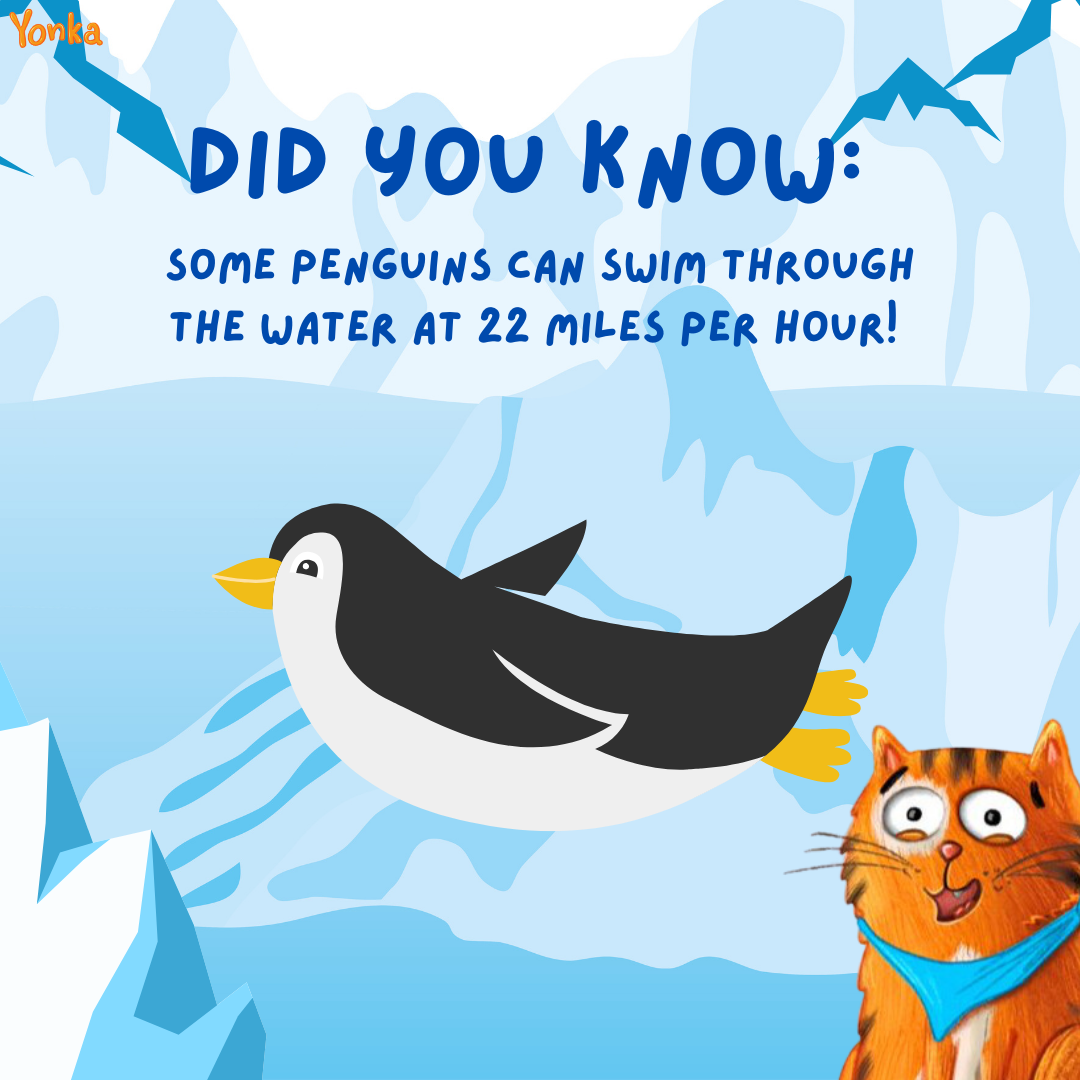 Did you know that penguins can't fly, but they're amazing swimmers? ๐โโ๏ธ๐ง They zoom through the water at speeds up to 22 miles per hour! ๐