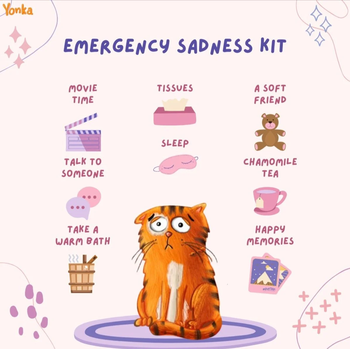 Somedays I wake up a little sad without fully knowing why. But I try to have happy thoughts, eat a healthy snack, or talk to a friend.